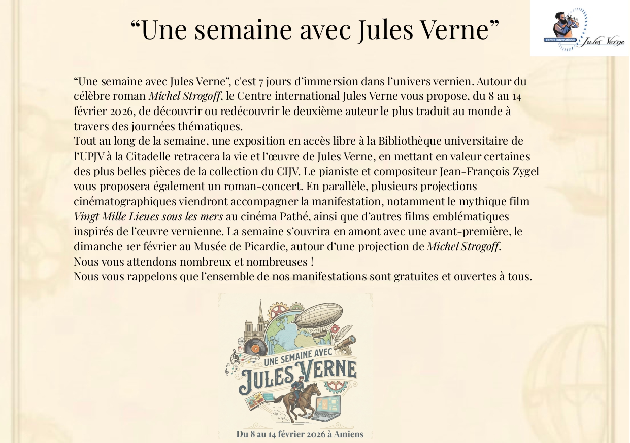 Lectures proposées par les étudiants de l’UPJV en collaboration avec l’Université de Macerata Réservation auprès de la Maison de Jules Verne *